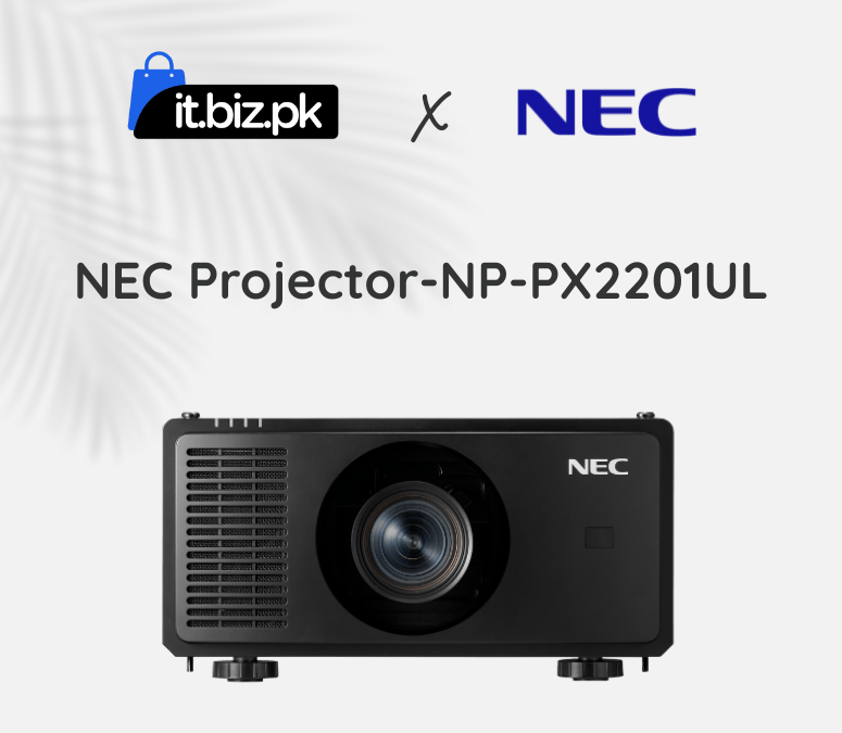 By providing exceptional brightness and accuracy for captivating audience experiences, the NEC Projector-NP-PX2201UL enhances visual presentations. Cutting-edge laser technology improves image quality, guaranteeing vibrant colors and fine details for work settings. Portability is maximized by the compact design, making setup simple in a variety of settings. Multimedia integration is made easier with seamless connectivity, which also offers outstanding performance for demanding, captivating projection requirements. With its impressive 20,000-lumen visuals, the NEC Projector-NP-PX2201UL transforms professional environments and captivates audiences with vivid, clear image clarity. Its laser light source reduces maintenance needs for dependable long-term use by ensuring consistent, high-quality performance. Increased adaptability facilitates flexible deployments that successfully satisfy a range of needs. During dynamic multimedia applications, easy operation is ensured by intuitive controls and many input possibilities. See details about NEC. We offer the best NEC Projector price in Pakistan. We are available across Pakistan.