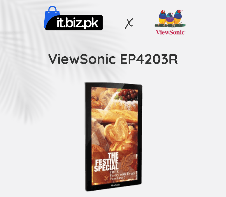 Beautiful 4K Ultra HD images are provided by the ViewSonic EP4203R for engaging digital signage experiences. Its elegant appearance guarantees flawless operation while enhancing any setting. Content handling is made easier with the integrated media player. Easy integration with a variety of devices is made possible by multiple connecting choices. Savor lively graphics and dependable operation, which makes it ideal for commercial or retail settings. With its excellent display quality and sharp 4K clarity, the ViewSonic EP4203R’s captivates viewers. Its easy-to-use interface simplifies operations. Long-term dependability is guaranteed by the sturdy construction. Diverse device compatibility is supported by flexible connectivity. Boost engagement in commercial settings with its versatile features. It is made for dynamic surroundings and readily guarantees an immersive visual experience while increasing productivity. See details about ViewSonic. We offer the best ViewSonic EP4203R price in Pakistan. We are available across Lahore, Pakistan.