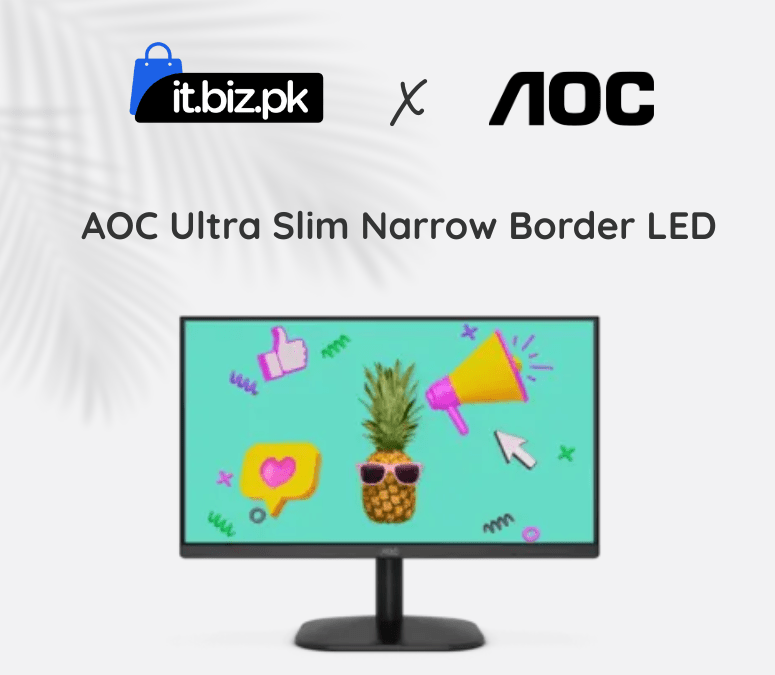 The AOC Ultra Slim Narrow Border LED is a sleek, stylish monitor designed to save space and give your setup a modern look. It offers a sharp display and smooth performance for work or gaming. Now available in Pakistan.